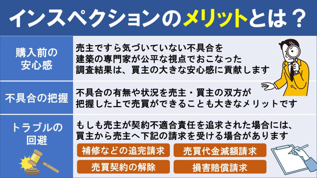 インスペクションは売主・買主双方にとって安心感やトラブル回避に有効な手段です。