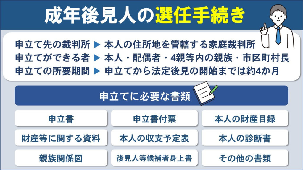 成年後見の申立ては、誰がどこへ何を揃えて手続きすれば良いのでしょうか。