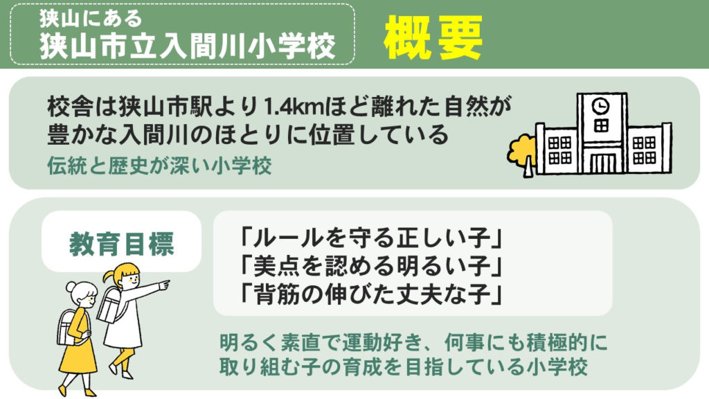 まずは、狭山にある狭山市立入間川小学校の概要についてご紹介します。