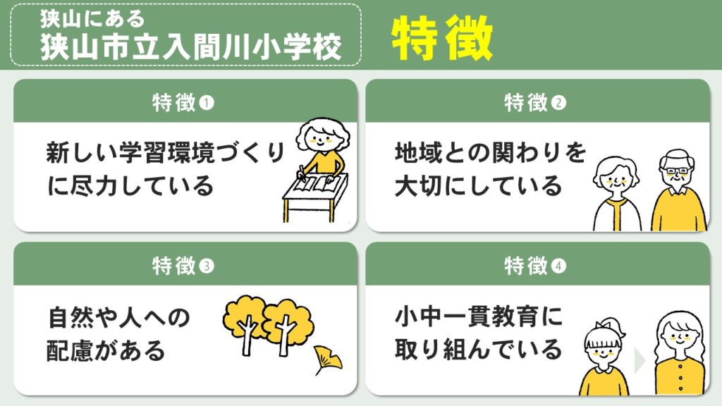 続いて、概要と一緒に把握しておきたい狭山市立入間川小学校の特徴についてご紹介します。