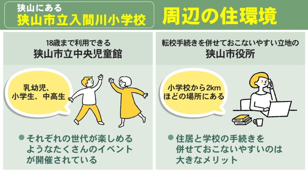 実際に狭山市立入間川小学校に通わせるとなれば、周辺の住環境についても気になるでしょう。
