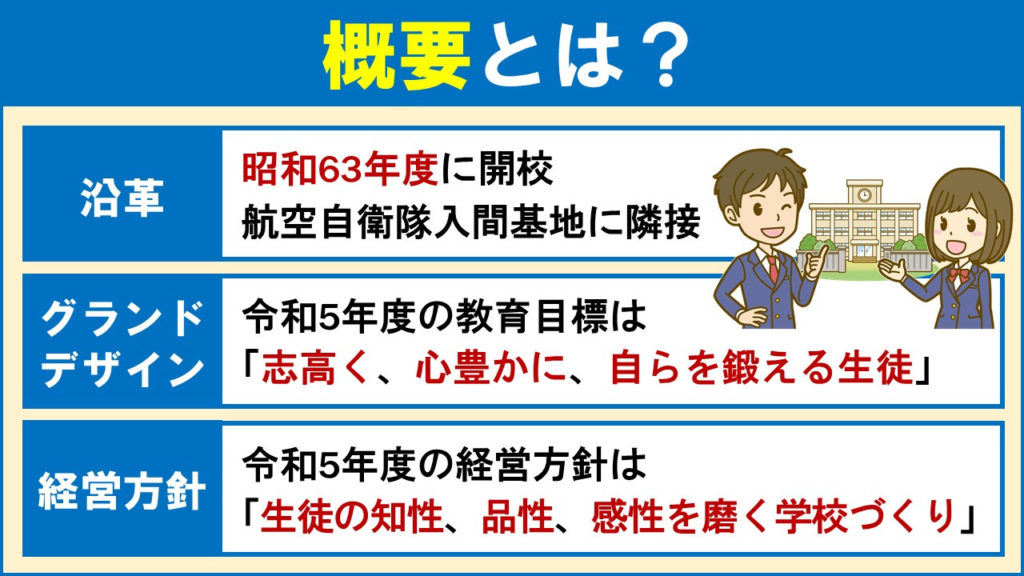 そのうえで、「知性を高め、気づく感性を備え、気遣いのできる生徒」を目指す生徒像としています。