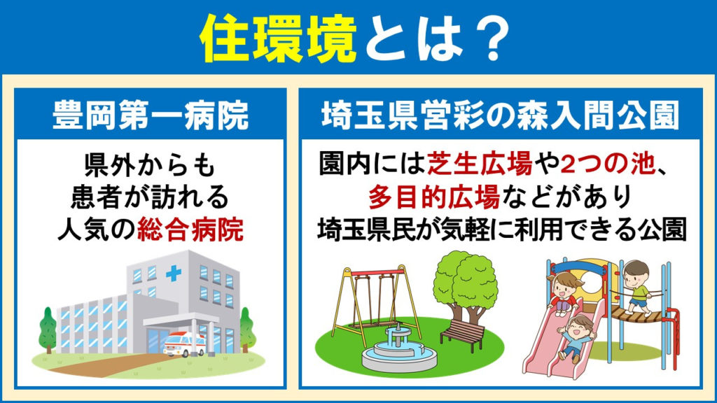 しかし、お子さまがいる家庭では、公園や病院の存在が住環境選びに大きく影響するのではないでしょうか。