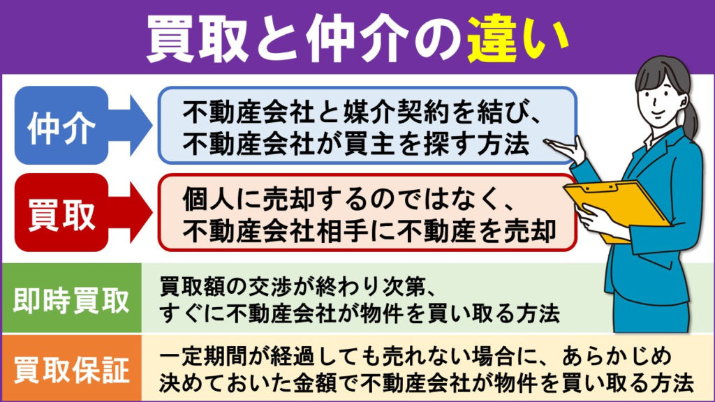 まずは買取と仲介の違いから確認していきましょう。