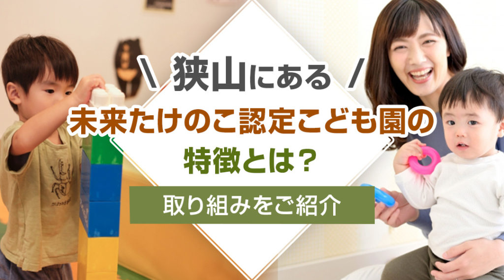 今回は、狭山にある「未来たけのこ認定こども園」の概要や特徴、取り組みをご紹介しました。