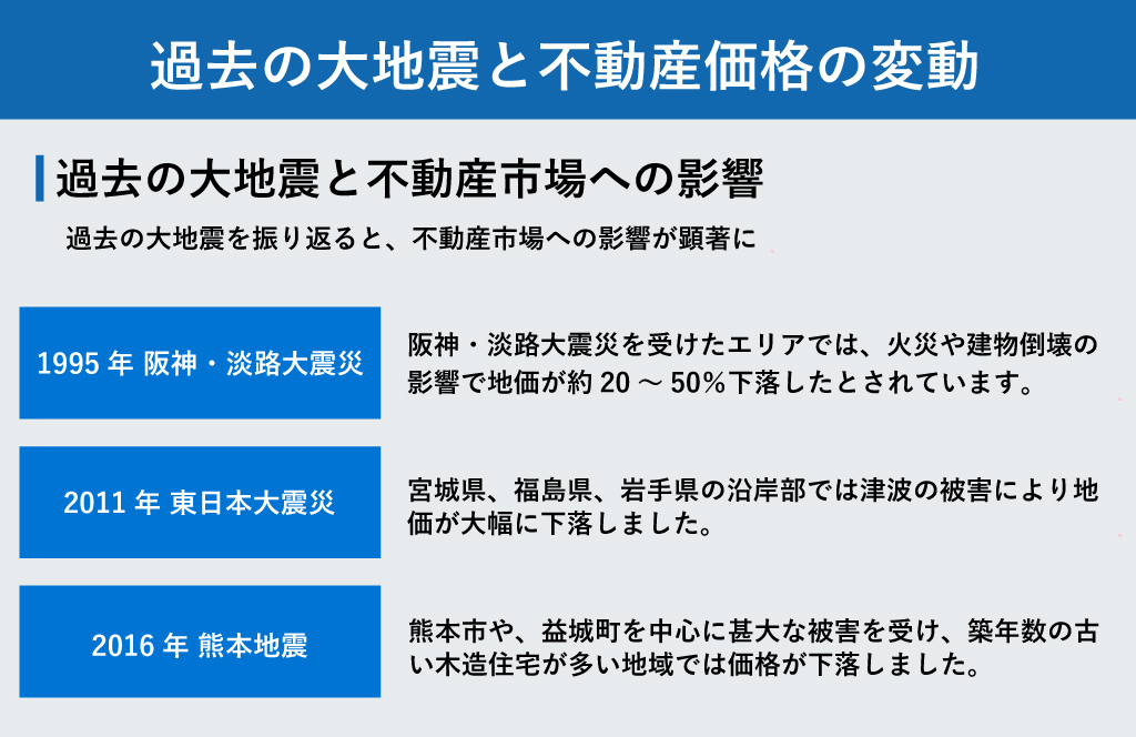 過去の大地震を振り返ると、不動産市場への影響が顕著に表れています。