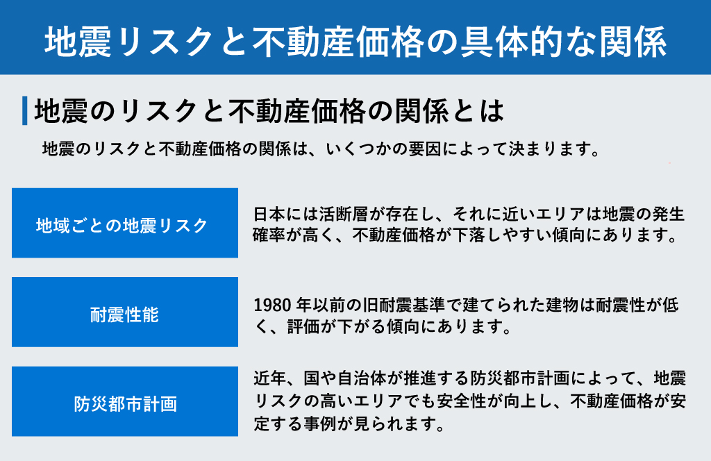 地震リスクと不動産価格の関係は、いくつかの要因によって決まります。