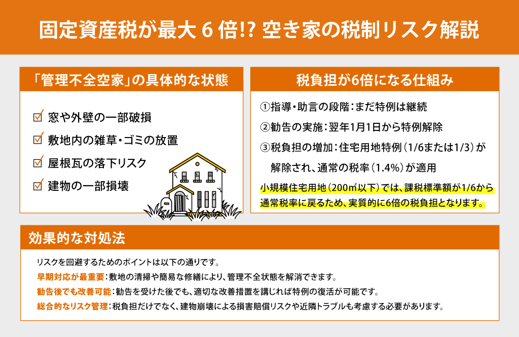 空き家の放置は、重大な税制上のリスクを伴います。具体的な仕組みを理解しましょう。