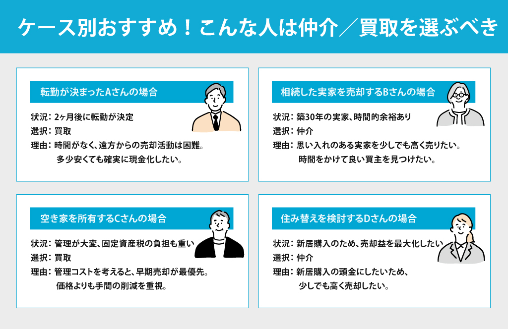 理由: 時間がなく、遠方からの売却活動は困難。多少安くても確実に現金化したい。