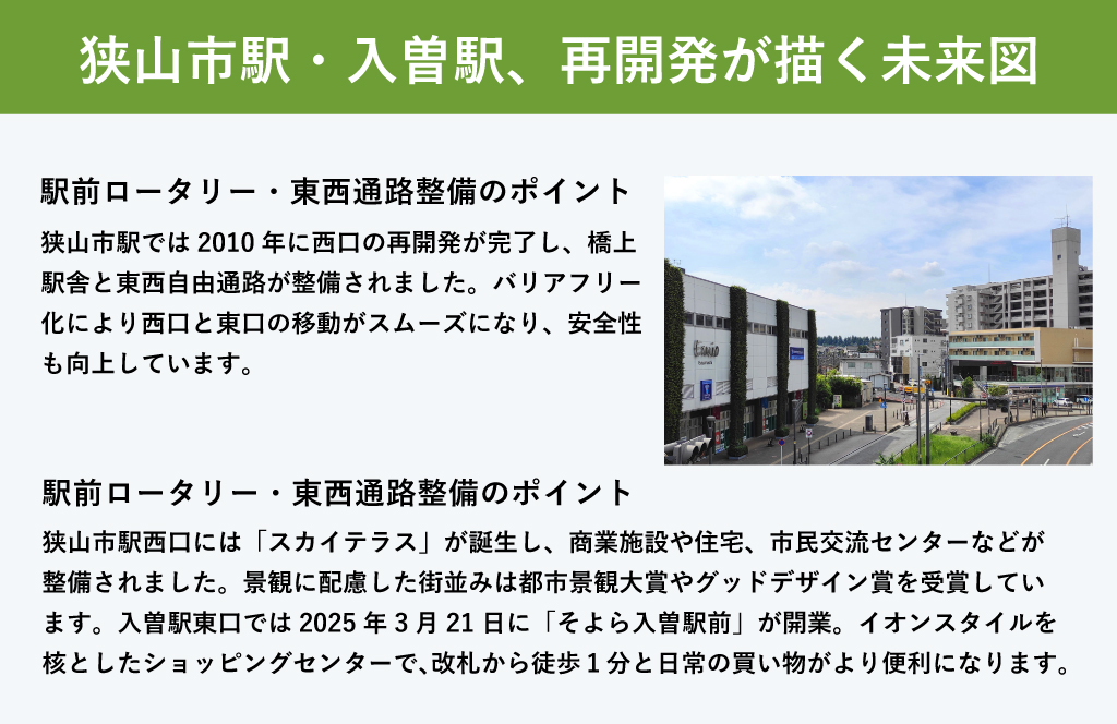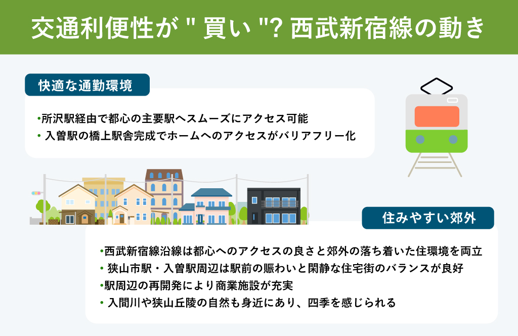 交通利便性の向上と自然豊かな住環境の両立——これこそが、西武新宿線沿線の狭山エリアが持つ、これからの時代に求められる「理想の郊外暮らし」の形と言えるでしょう。