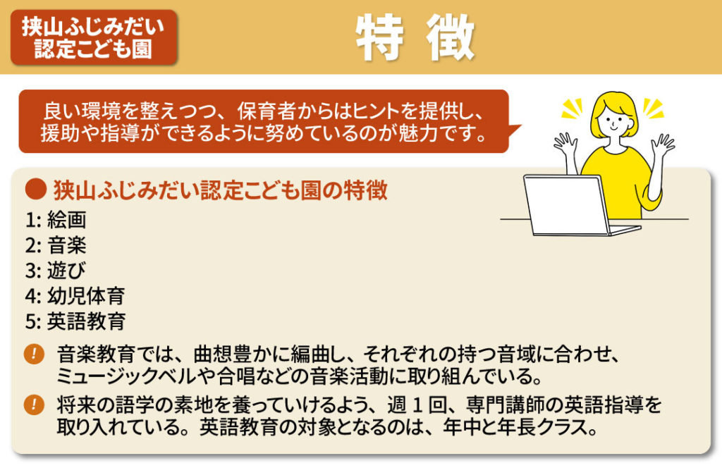 続いて、狭山ふじみだい認定こども園の特徴について解説します。