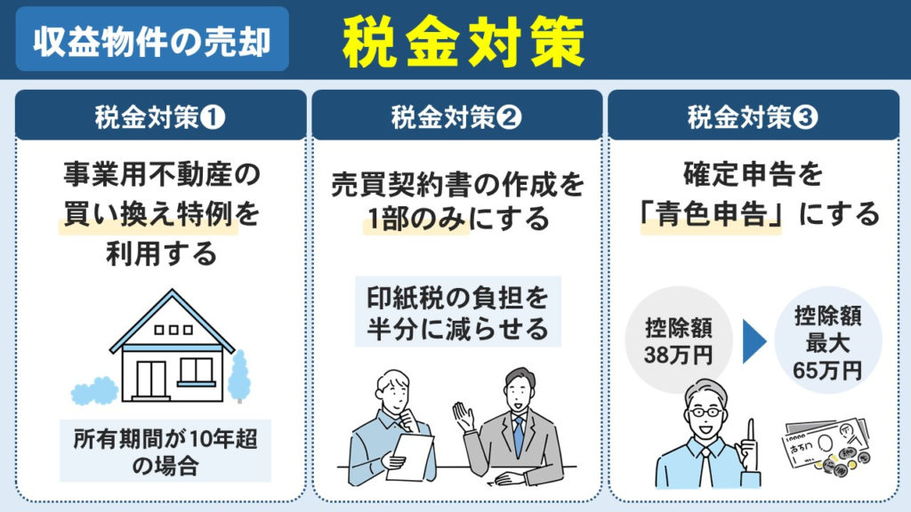 収益物件を売却すると数種類の税金が課されますが、税金対策になる制度や節税のポイントがいくつかあります。