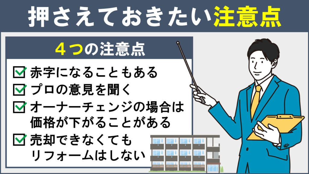 最後に、投資用マンションを売却するタイミングで押さえておきたい、注意点を解説します。