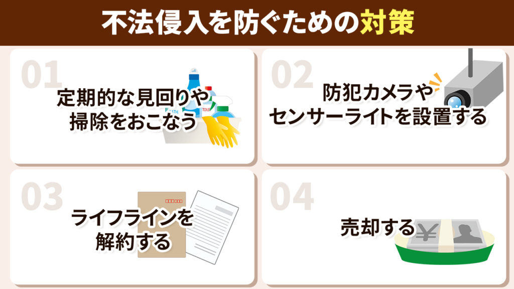 最後に、空き家への不法侵入を防ぐための対策を解説します。
