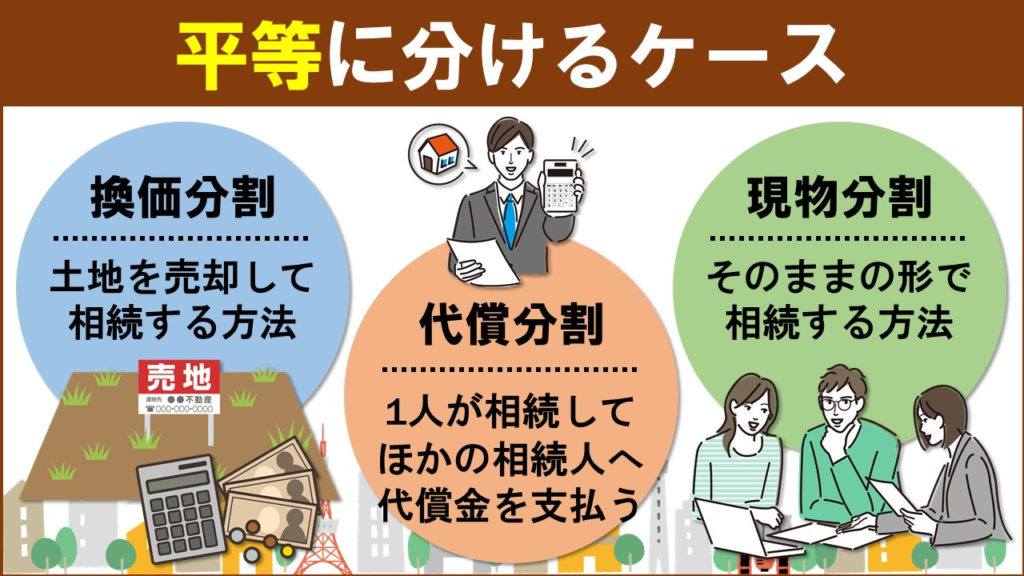 土地を相続する方法には「換価分割」「代償分割」「現物分割」の3つがあります。