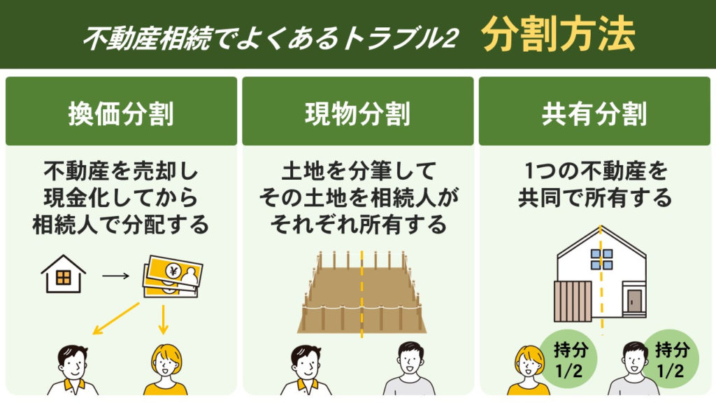 不動産相続では、不動産をどのように相続人で分割するかでもトラブルに発展することがあります。