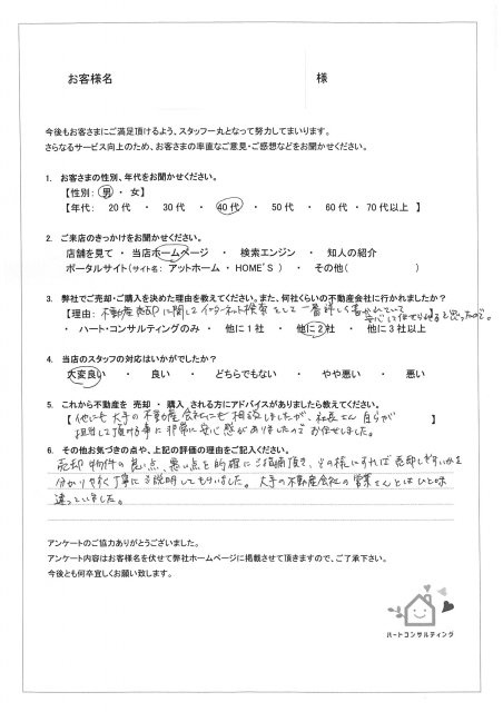 当店の対応はいかがでしたか?これから不動産を売却・購入される方にアドバンスがありましたら教えてください。