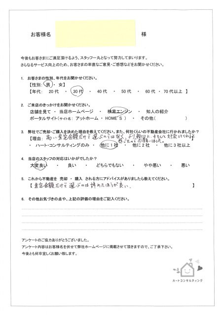 他に1社査定して貰いました。もう1社は高い査定金額を出してきましたが、高い査定金額だけで選ぶのではなく、より親切にきちんとした対応をしてくれると感じたのでお願いしました。